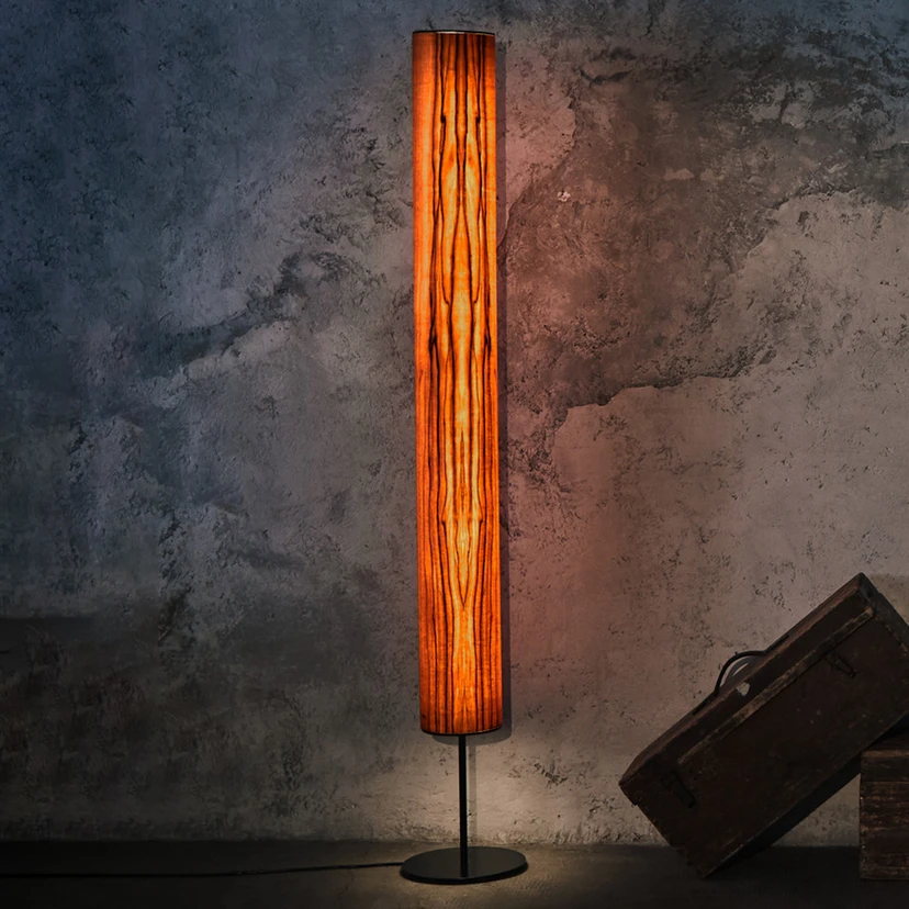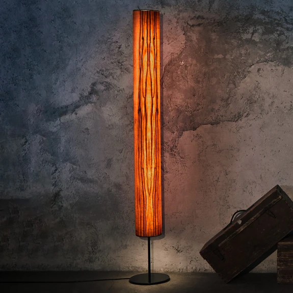 Die LED-Stehleuchte Arbor sieht nicht nur edel aus, hinter dem Konzept der Marke LeuchtNatur steckt auch Einiges dahinter. Das Design umfasst einen zylinderförmigen Lampenschirm aus erlesenem Holz aus Deutschland und Österreich, der an der Ober- und Unterseite mit einem Metallabschluss versehen ist und auf einem ebenso aus Metall geformten Fuß steht. Die Metallelemente und die Formgebung an sich verleihen dem Einrichtungsstück eine moderne Komponente. Das Furnierholz mit der naturbelassenen Maserung und Behandlung mit natürlichen Ölen strahlt wiederum eine besondere Wärme aus. Der behagliche Effekt wird durch die warmweißen Lichtstrahlen der im Lieferumfang enthaltenen LED-Röhre weiter verstärkt. Die Bedienung erfolgt über einen in der Zuleitung integrierten Fußtrittschalter.