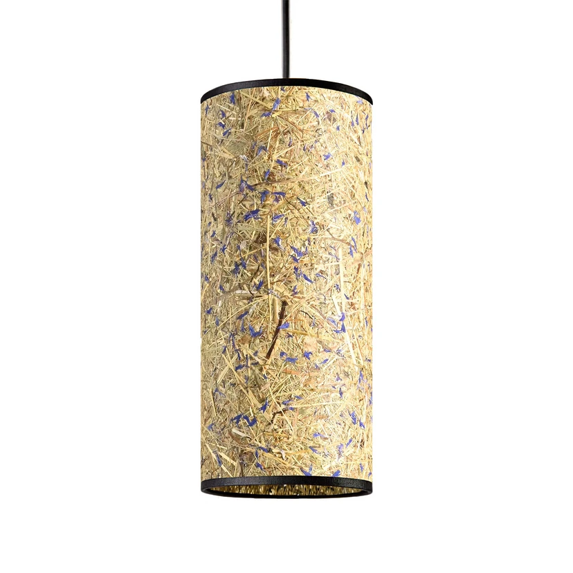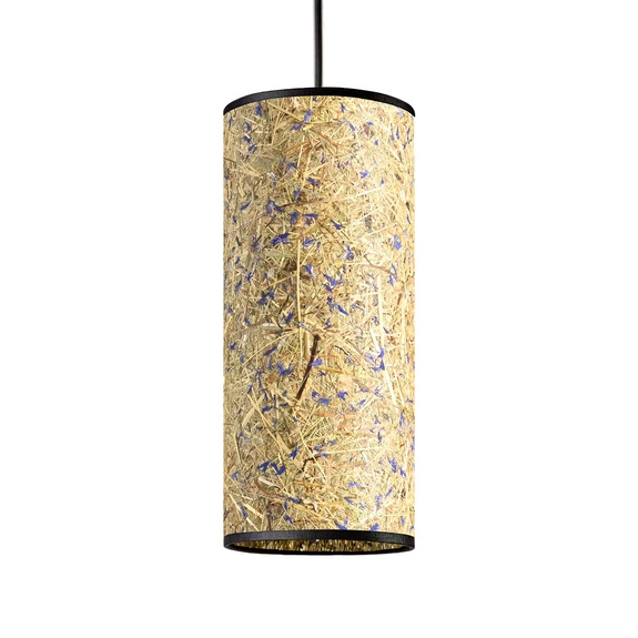 Das besondere Merkmal der Hängeleuchte Nux ist ihr zylinderförmig gestalteter Schirm, der aus handgesenstem Almheu hergestellt wurde. Die eingearbeiteten Blütenblätter sorgen für einen schönen Farbakzent und verleihen Nux eine einzigartige Optik. Das Licht wird Richtung Boden abgestrahlt, wodurch sich die Pendellampe zur Beleuchtung des Wohn- oder Esszimmertisches eignet. Das verwendete Almheu stammt aus Österreich, ist frei von Schadstoffen und verströmt einen unnachahmlichen Duft im Raum.