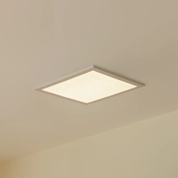 Das LED-Panel Kenma punktet mit seinen vielseitigen Funktionen und dem schlanken Design, das perfekt in moderne Umgebungen passt. Das Besondere an dieser Leuchte ist, dass die Panelabdeckung einen Sterneneffekt besitzt und daher für ganz besondere Lichtakzente im Raum sorgt. Kenma kann sowohl im eigenen Wohn- oder Arbeitszimmer als auch im Bereich der Hotellerie oder Gastronomie zum Einsatz kommen. Die Lichtfarbe lässt sich dreistufig über den Wandschalter verändern und kann außerdem, ebenso wie die Helligkeit, über die mitgelieferte Fernbedienung gesteuert werden. Dabei erweist sich die Memory-Munktion als besonders praktisch, denn der zuletzt gewählte Wert bleibt erhalten, wenn die Leuchte zuvor mindestens zehn Sekunden ausgeschaltet war oder sechs Sekunden, nachdem sie eingeschaltet wurde. Auch der Nachtlichtmodus erweist sich im Alltag als ein besonders praktisches Feature.