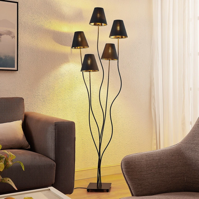 Lindby Komalie Stehleuchte, fünfflammig, schwarz