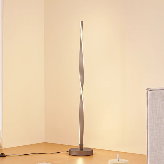 Die LED-Stehleuchte Jaren vereint modernes Design mit funktionaler Beleuchtung. Gefertigt aus Metall und Acryl, fügt sie sich nahtlos in zeitgenössische Wohn- und Esszimmer ein. Die Kombination aus schwarzem und braunem Finish verleiht der Leuchte eine elegante Ästhetik, die sowohl in minimalistischen als auch in opulenten Interieurs Akzente setzt.
