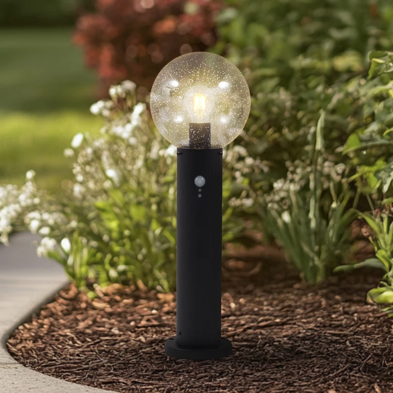 Einflammige Sockelleuchte Dangan aus Glas und Aluminium - inklusive Bewegungssensor