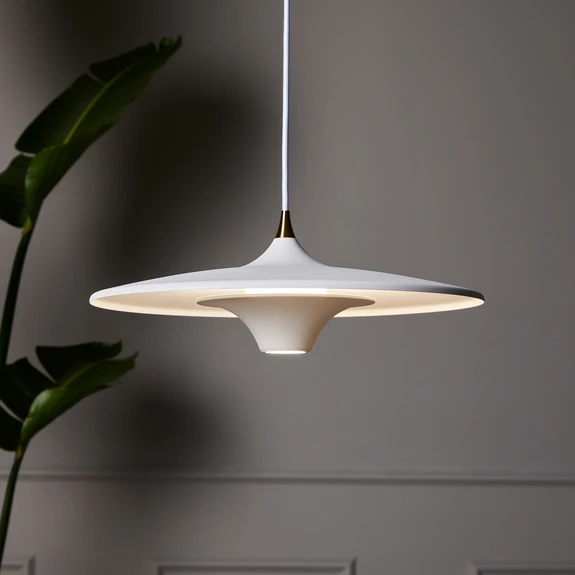 Mit ihrem leichten und fast schwebenden Aussehen ist Moja eine Pendelleuchte, die ideal für moderne Räume und Umgebungen ist. Trotz des zurückhaltenden und minimalistischen Designs erzeugt sie ein schönes Licht. Die Pendelleuchte verfügt über eine integrierte LED-Beleuchtung mit direkter und indirekter Lichtverteilung, die sowohl ein funktionales Licht nach oben und unten als auch eine angenehme Atmosphäre schafft.