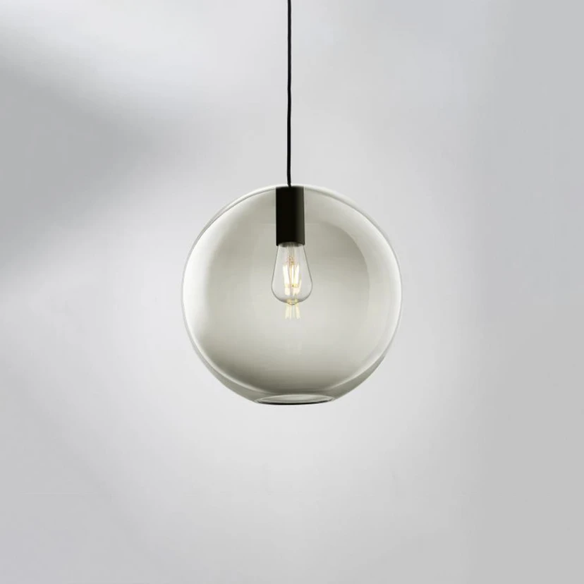 Ein Comeback des 80er-Stils ist die Hängeleuchte Loom mit ihrem getönten, mundgeblasenen Glasschirm in Kugelform. Die Fassung ist in das transluzente Glas integriert und zeigt das Leuchtmittel eindrucksvoll. Daher eignet sich eine Lampe mit Filamenttechnik, um noch mehr Aufmerksamkeit auf den Glasschirm zu ziehen. Das Licht kann in alle Richtungen strömen und eignet sich hervorragend zur allgemeinen Beleuchtung. Denkbar sind hier Empfangsräume und gemütliche Wohnzimmer, gerne auch in Kombination mit mehreren Loon-Leuchten in verschiedenen Höhen montiert.