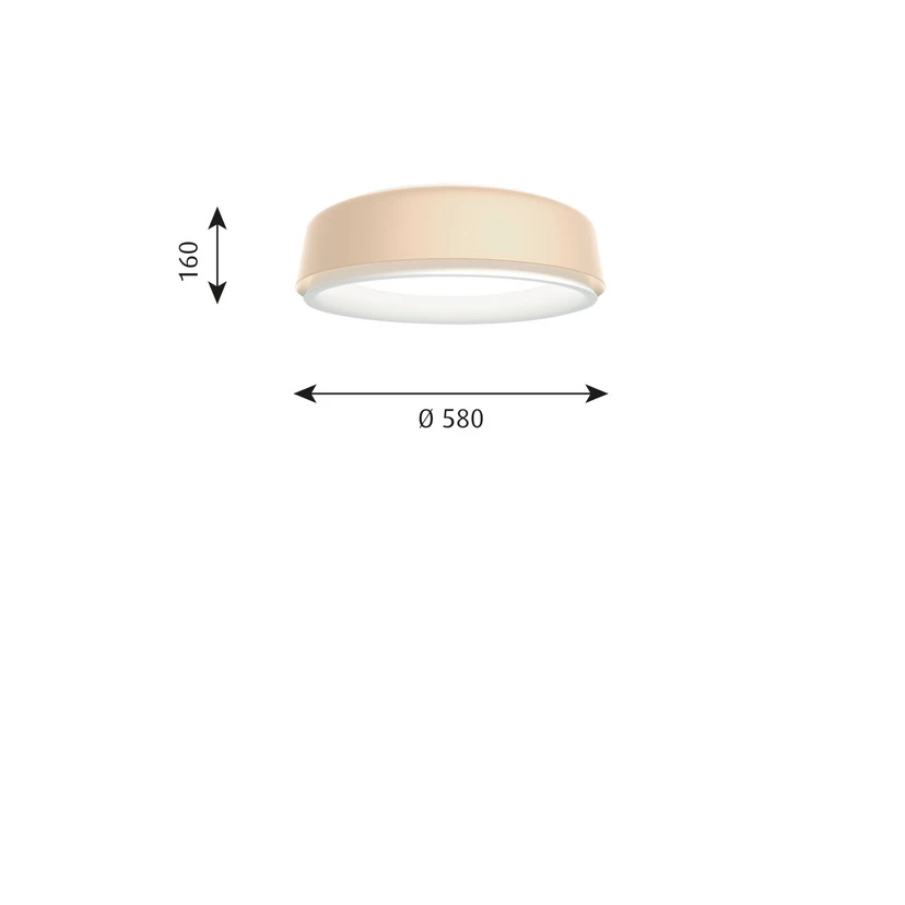 Die eigentlich in klassischer Manier gestaltete LED-Deckenleuchte überrascht mit einer Zusammensetzung, die die Lichtwirkung äußerst positiv beeinflusst. Der leicht abgewinkelte Reflektor um den mittig angebrachten, waagerechten Diffusor reduziert den Kontrast an den Rändern. Der den Reflektor umgebende, farbige Außenschirm reflektiert das Licht nach innen. Es wird ein schöner Lichtschein an den Außenseiten des oberen und unteren Reflektors erzeugt. Insgesamt werden vier Lichtkreise um den zentralen Diffusor wahrgenommen. In der Lieferung enthalten ist eine lose Leitung mit Stecker für die Primärseite der Installation enthalten.