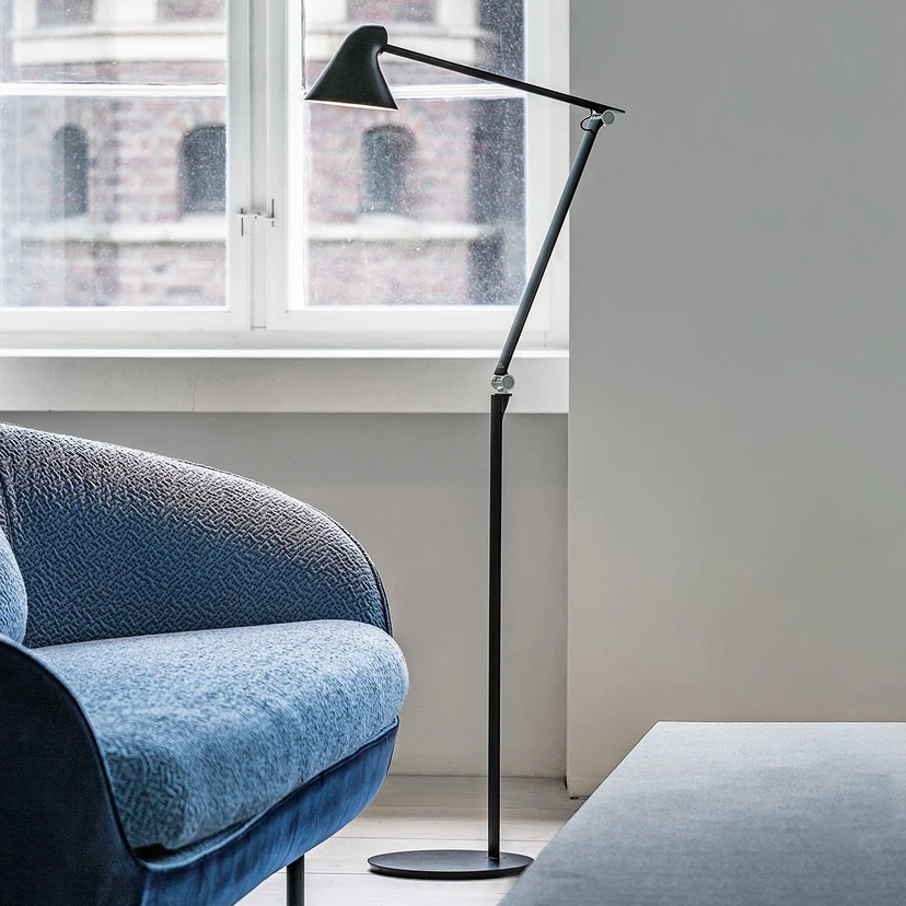 NJP zeigt sich als Neuinterpretation der klassischen Architektenlampe und ist mit zwei Gelenken ausgestattet. So wird eine flexible Ausrichtung bis hin zur gewünschten Positionierung ermöglicht und eine Veränderung der Position ist auch wieder schnell vorgenommen. Die sichtbaren Federn in den Armgelenken steigern den Dekoreffekt dieser ohnehin sehr betrachtenswerten Leuchte. Durch die hintere Schirmöffnung zum Arm hin kann der Kopf zudem stufenlos justiert werden, gleichzeitig wird die integrierte LED-Einheit optimal belüftet.