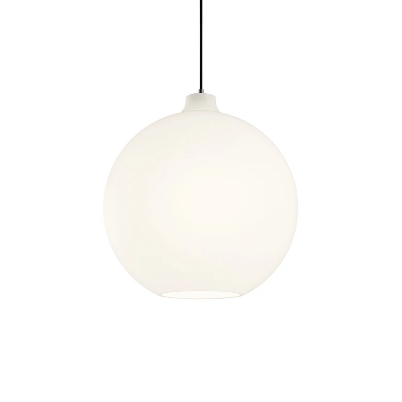 Die Hängeleuchte Wohlert zeichnet sich durch einen fast kugelförmigen Schirm aus mattem, weißem, mundgeblasenem Glas aus. Der Schirm ist an der Unterseite offen und strahlt das Licht hauptsächlich direkt nach unten. Es dringt jedoch auch ein sanfter Lichtschein rundherum durch die Glasoberfläche. Die ideale Leuchte für eine stimmungsvolle Ausleuchtung mit atmosphärischem Charakter. Wohlert eignet sich sowohl für die Grund- als auch für die gezielte Bereichsbeleuchtung, beispielsweise eines Tisches. Die Abhängungshöhe kann ausschließlich bei der Montage variiert werden. Das Pendelrohr besteht aus gebürstetem Stahl und bekräftigt die moderne Optik.