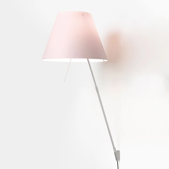 Die Wandleuchte Costanza ist in ihrem Design angelehnt an klassische Tisch- und Stehleuchten: Gestänge mit Schirm. Das Gestänge der Wandleuchte verfügt außerdem über einen Teleskoparm, mit Hilfe dessen die Leuchte von 76 bis 110 cm in der Höhe verstellt werden kann. Der konisch geformte Schirm besteht aus Polycarbonat und wurde im Siebdruckverfahren bedruckt. Am unteren Ende des Schirms ragt ein kleiner Stab heraus, der sowohl zum Ein- und Ausschalten sowie zum Dimmen (in vier Stufen) verwendet wird.
