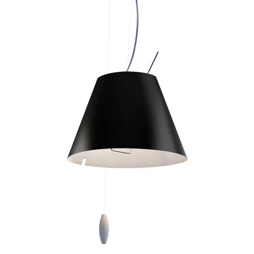 Die perfekte Beleuchtung über Tischen oder Theken bildet die Pendelleuchte Costanzina, die mit ihrem Design wie auch ihrer Funktionalität gleichermaßen punkten kann. Der konisch geformte Lampenschirm ist auch einem speziellen Polycarbonat hergestellt. Er ist nach unten und auch nach oben hin offen, sodass das Licht nicht nur zielgerichtet beispielswiese auf den Tisch gelenkt wird, sondern auch in den Raum hinein strahlt. Das Ein- und Ausschalten der Pendelleuchte kann mittels des kleinen Stabes, der direkt an der Fassung angebracht ist, erfolgen. Für die korrekte Postion der Leuchte sorgt das flexible Zugseilsystem. Mit einem dekorativen Gegengewicht lässt sich die Costanzina bequem und ohne viel Aufhebens in der Höhe verstellen. So ist jederzeit für das beste Licht gesorgt.