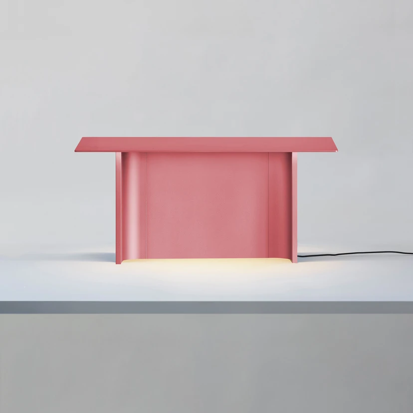 Diese ungewöhnliche Tischleuchte hat der norwegische Designer Daniel Rybakken nach dem Vorbild traditioneller Heuhütten seines Heimatlands entworfen. So weist Fienile ein zu den Seiten leicht geneigtes Flachdach, zwei begrenzende Wände an den Längsseiten sowie eine zentrale Trennwand auf. Die LEDs sind an der Unterseite des Dachs integriert, sodass die geometrische Form der Tischleuchte betont wird und ein indirektes Licht in den Raum abgegeben wird.