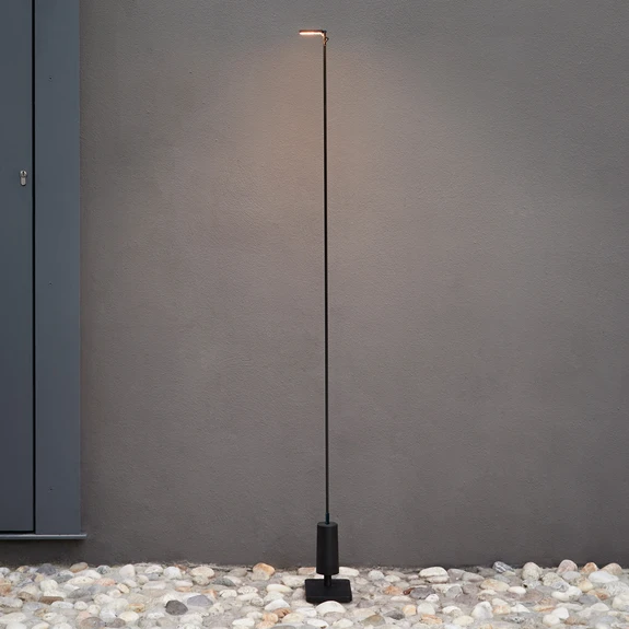Die LED-Leuchte Flia ist aufgrund ihrer Form eine sehr vielseitige Beleuchtungslösung für den Außenbereich: Sie kann sowohl als Wegeleuchte entlang von Pfaden und Auffahrten verwendet werden wie auch als festmontierte Stehleuchte am Rande der Terrasse. Da sie aus einem schlanken Gestänge aus Carbonfasern und einem relativ kleinen Leuchtenkopf aus Aluminium besteht, ist sie von ihrer Größe und ihren Maßen her weniger sperrig und fügt sich eher unauffällig in die Umgebung ein.