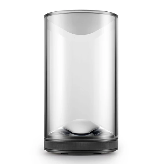 Die LED-Tischleuchte Eva strahlt ein warmes Leuchten aus - ein magisches Phänomen zwischen sichtbar und unsichtbar. Der gesamte Mechanismus der Tischleuchte befindet sich in einem dicken Glaszylinder aus hochwertigem Borosilikatglas mit einer Stärke von 7 mm, der in Deutschland für spezielle Anwendungen hergestellt wurde. Die warmweiße LED sitzt unten im Glaszylinder, strahlt nach oben kraftvoll ab und wird vom kegelförmigen Diffusor oben im Glaszylinder reflektiert, so dass eine ganz besondere, indirekte Beleuchtung entsteht, die sich neben der Blendfreiheit durch eine besonders gute Farbwiedergabe auszeichnet (Ra 97). Aus- wie eingeschaltet stellt die LED-Tischleuchte Eva ein edles Designobjekt dar, wo auch immer sie platziert wird. Der flache Fuß der Leuchte aus Aluminium ist mit einem beweglichen, gerillten Ring versehen. Dieser fungiert als Dimmer und ermöglicht ein Dimmen des Lichts von 100 % bis 10 %.