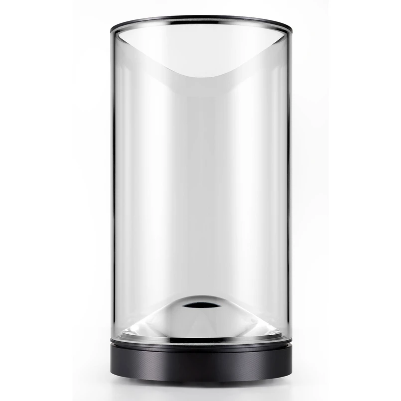 Sanfte Beleuchtung in Form eines warmen Leuchtens strahlt die Tischleuchte Eve aus dem Hause Lumina Italia aus - ein Phänomen zwischen sichtbar und unsichtbar. Sie besteht aus einem hochwertigen Zylinder aus Borosilikatglas, in dem der gesamte Mechanismus der Leuchte sitzt. Oben im Zylinder befindet sich ein kegelförmiger Diffusor, unten die LED-Lichtquelle. Ihr nach oben strahlendes Licht wird vom Diffusor reflektiert, so dass eine sehr angenehme, indirekte Beleuchtung entsteht. Im flachen Fuß der Tischleuchte ist ein Dimmer in Form eines beweglichen Metallrings mit gerillter Oberfläche verbaut.