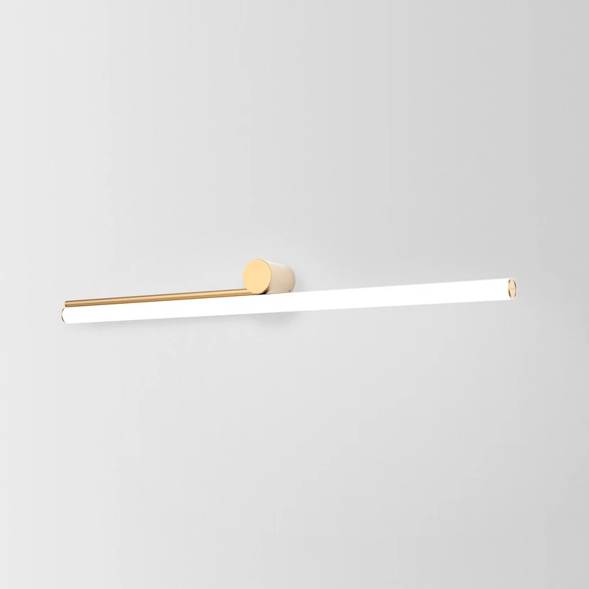 Hauptziel war es, mit Ambrosia die schnörkellose Funktionalität herkömmlicher Linienleuchten und Ästhetik zu vereinen. So sind die aus Aluminium und Stahl bestehende Wandhalterung sowie die übrigen Elemente des Rahmens, der ebenfalls aus Aluminium gefertigt wird, einheitlich lackiert. Als Kontrast hierzu wirkt die opalweiße Abdeckung aus Methacrylat, die gleichzeitig für einen leicht diffusen Lichtwurf sorgt und an der Unterseite der Strebe ausgesetzt angebracht ist. Auf technischer Seite gewährleisten hochwertige SMD-LEDs eine gute Ausleuchtung mit warmweißem Licht.