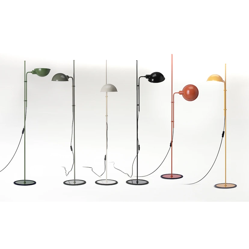 Fuß und Gestell von Funiculí sind aus lackiertem Eisen gefertigt, der Schirm besteht aus lackiertem Aluminium. Funiculí besticht mit der Drehbarkeit des Schirms um 360 Grad sowie dessen Beweglichkeit mittels einer Klammer an der Stange nach unten und nach oben. So kann die Lichtausrichtung jeweils nach Bedarf vorgenommen werden. Funiculí passt aufgrund ihrer dezenten Schlichtheit zu vielen Einrichtungsvarianten und ergänzt das Beleuchtungskonzept für Wohnräume um eine ebenso dekorative wie funktionale Zusatzlichtquelle.