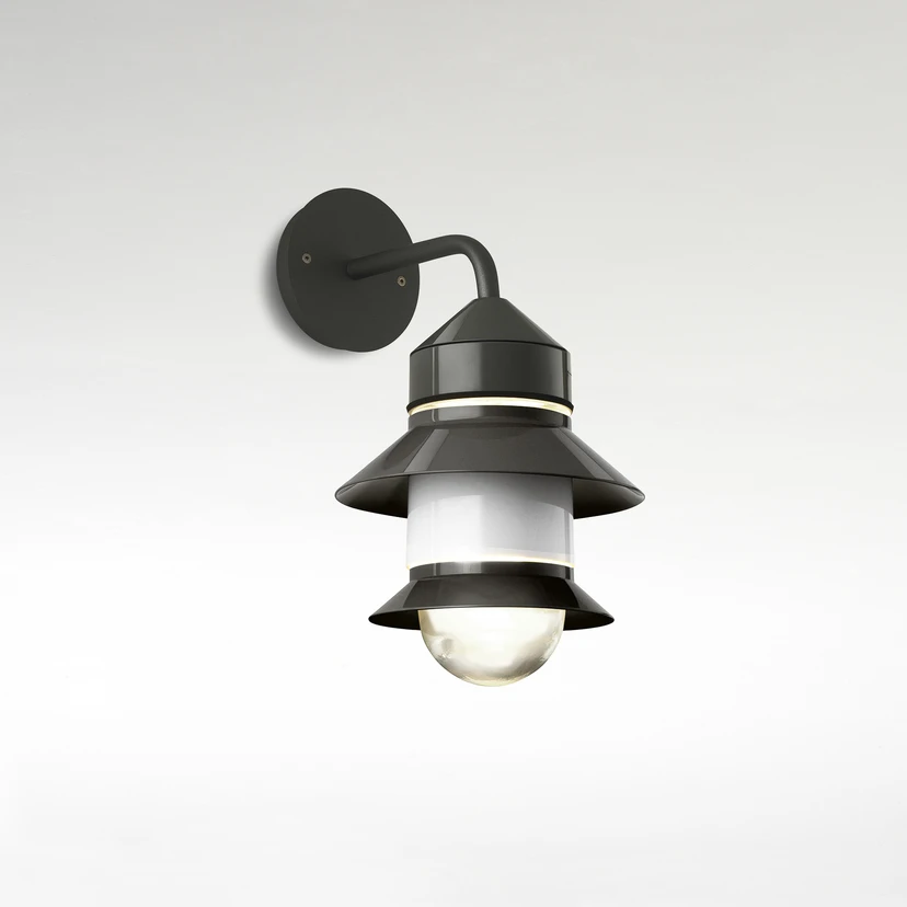 Anpassbar und gut geschützt: Die laternenförmige Außenwandleuchte Santorini aus mundgeblasenem Glas