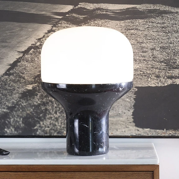 Runde Tischleuchte Delux mit Fuß aus Marmor und opalem Glasschirm