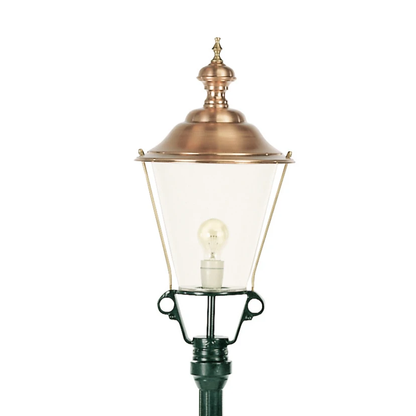 Die klassische Mastleuchte Flores kann mit ihrer stattlichen Höhe sowie einem attraktiven Design im Außenbereich überzeugen. Stilvoll leuchtet sie den Weg, wobei vor allem die überaus dekorative Kupferhaube einen wahren Hingucker darstellt. Diese geschmackvolle Leuchte sollte allerdings nur von einem Profi installiert werden, da die Anschlussstelle in die Fassung integriert wurde. Ein Gummikabel ist dabei die perfekte Wahl, um die Leuchte, die zur Verschönerung des eigenen Gartens genutzt werden kann, sicher anzuschließen.