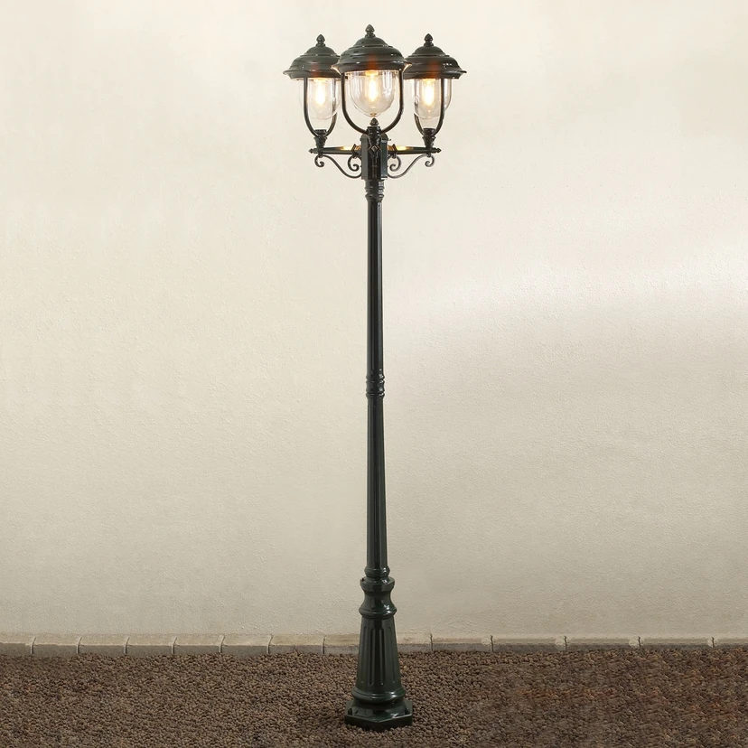 PARMA ist ein klassischer, aus Aluminium gefertigter Kandelaber. Die drei Laternen sind im Dreieck auf dem hübsch verzierten Mast angeordnet und garantieren durch die klaren Leuchtengläser eine sehr gute Ausleuchtung.
