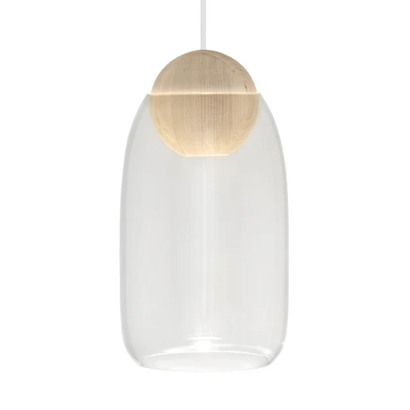 Diese Pendelleuchte der finnischen Designerin Maija Puoskari spendet nicht nur ein stimmungsvolles Licht zur Tisch- und Bereichsbeleuchtung, sondern wirkt - einzeln oder in einer Gruppe platziert - als Blickfang in jedem Raum. Der naturverbundenen Designerin, die ihre Freizeit gerne mit Angeln oder dem Sammeln von Pilzen verbringt, ist hier ein Leuchtentwurf gelungen, der aufgrund seiner minimalistischen Schönheit eine ganz besondere Wirkung erzielt. Liuku Ball besteht aus einer Lindenholzbasis in Kugelform mit nach unten gerichteter GU10-Aufnahme; Der zylindrische, leicht bauchige Glasschirm umschließt die Holzkugel im unteren Bereich. Der Clou bei der Pendelleuchte Liuku: Die ballförmige Holzbasis kann auch ohne Glasschirm als puristische Holzleuchte genutzt werden.