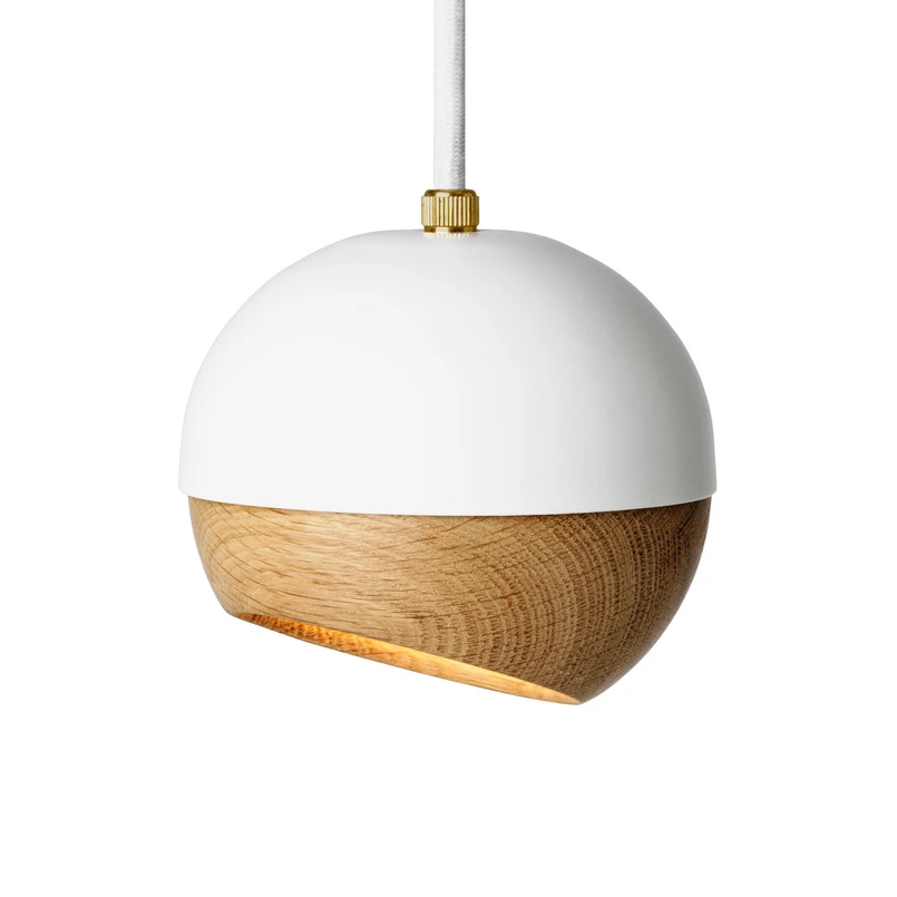 Design-Hängeleuchte Ray - Kugelschirm mit ausrichtbarem Element aus Eichenholz