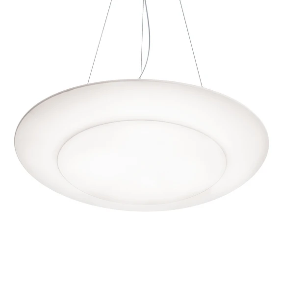 Leicht und luftig - so wirkt das Design der LED- Pendelleuchte Ring Tonda, die der italienische Designer Paolo Grasselli erdacht hat. Optisch erinnert Ring Tonda nicht nur durch die Form und die Farbe an eine Wolke, sondern auch durch den Stoff, mit dem das Metallgerüst des Schirms bezogen wurde. Es handelt sich um Lycra-Stoff, einen leicht dehnbaren und etwas schimmernden Stoff, der im Zusammenwirken mit dem abstrahlenden Licht der LEDs eine geradezu atmosphärische Lichtstimmung bewirkt.