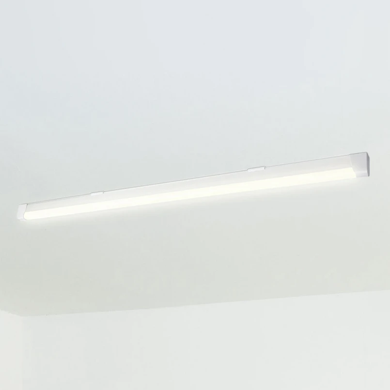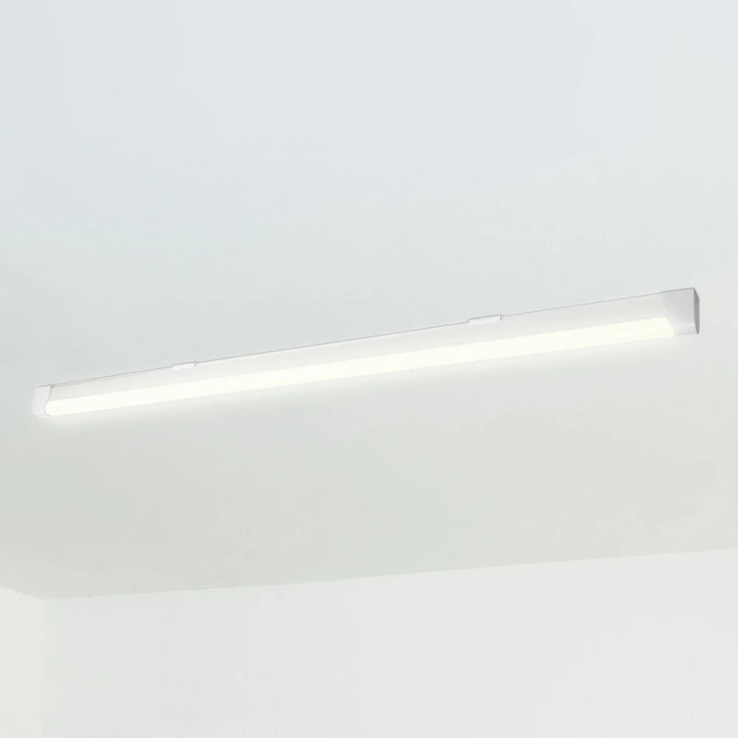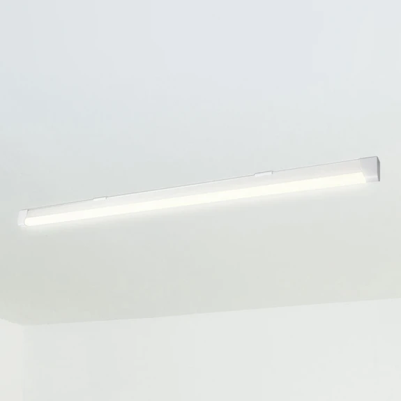 Die schmale Deckenleuchte mit integrierten LEDs ist sehr universell einsetzbar in Hobbyräumen, Kellerräumen oder anderen Arbeits- und Nebenräumen. Die universalweiße Lichtfarbe der LEDs gilt als klassisches Arbeitslicht. Die Leuchte besteht aus Aluminium (Korpus) und Polycarbonat (Diffusor). Sie kann auch als Wandleuchte montiert werden.