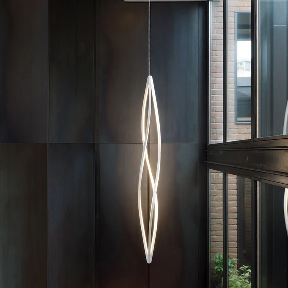 LED-Pendelleuchte In The Wind - vertikale Struktur aus verdrehten Profilen