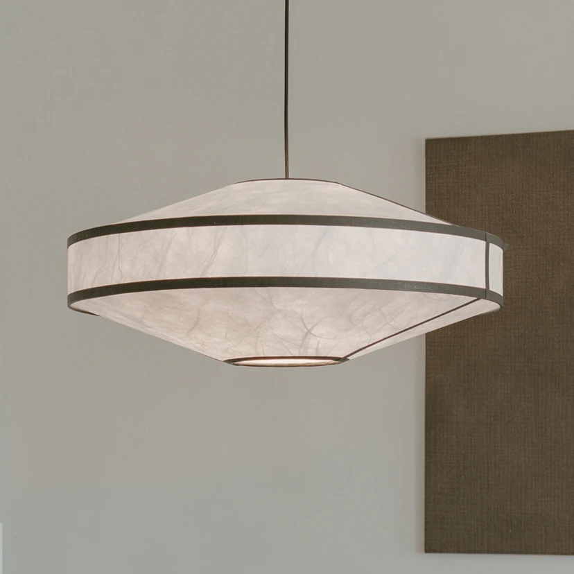 Die 3-flammige Hängeleuchte Kite ist ein Werk der Proportion und Abstraktion, in dem sich reine und geometrische Silhouetten mit glatter, strukturierter Materialität verbinden. Zarte Bänder umranden die Silhouetten, eine technische Raffinesse, die Tiefe und Kontrast bereichert. Im Inneren des Lampenschirms finden sich Fassungen für drei frei wählbare E27-Leuchtmittel (nicht enthalten, siehe Zubehör). Ob zusammen oder einzeln ausgestellt, die Kite Pendelleuchten dienen als leuchtendes skulpturales Element.