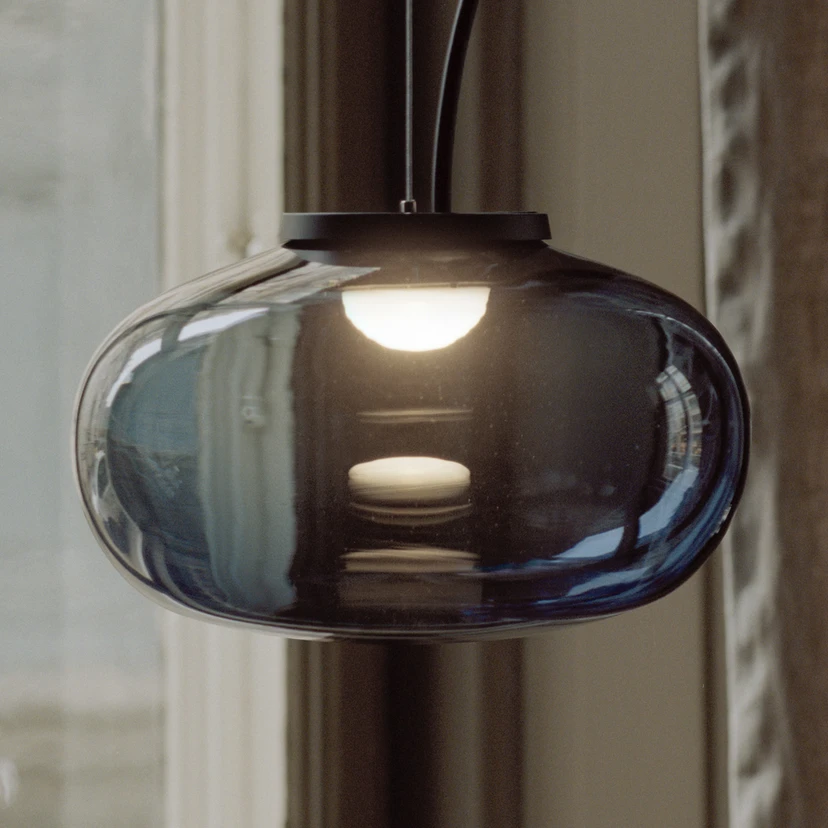 Die Designerin Signe Hytte hat sich für ihre Leuchtenserie Karl-Johan von einer herbstlichen Waldexkursion inspirieren lassen, ihre Leuchten ähneln nämlich von der Form her Pilzen. Bei der Hängeleuchte dieser Serie ist es der bauchige Schirm aus Glas, der vor allem ins Auge sticht. Im Inneren befinden sich LEDs.