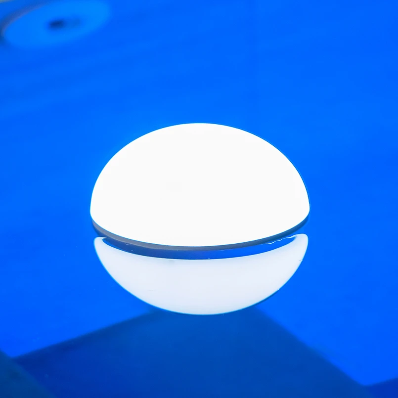 Die fast kugelförmige Leuchte Coco kann sowohl als Wasserleuchte im und auf dem Wasser verwendet werden als auch als Hängeleuchte auf der Terrasse (Haken vorhanden). Die Schutzart IP68 erlaubt auch das komplette Untertauchen der Leuchte.