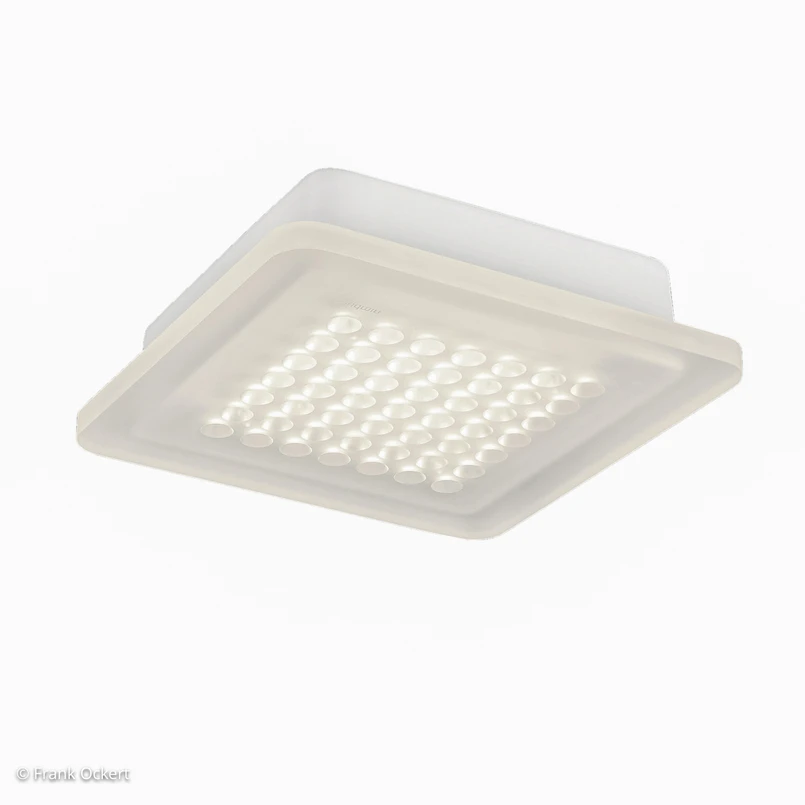 Die weiße Deckenleuchte Modul Q 49 begeistert durch ihre zeitgemäße Optik. Die abgerundeten Ecken lassen den quadratischen Leuchtenkorpus etwas weicher wirken. Dieser besteht aus einem Aufbaugehäuse aus Kunststoff und einer Diffusorfläche aus mattiertem Acryl, die durch rückseitige Permanentmagnete miteinander verbunden sind. Das Licht der integrierten LEDs ist breitabstrahlend und wird gleichmäßig im Raum verteilt.