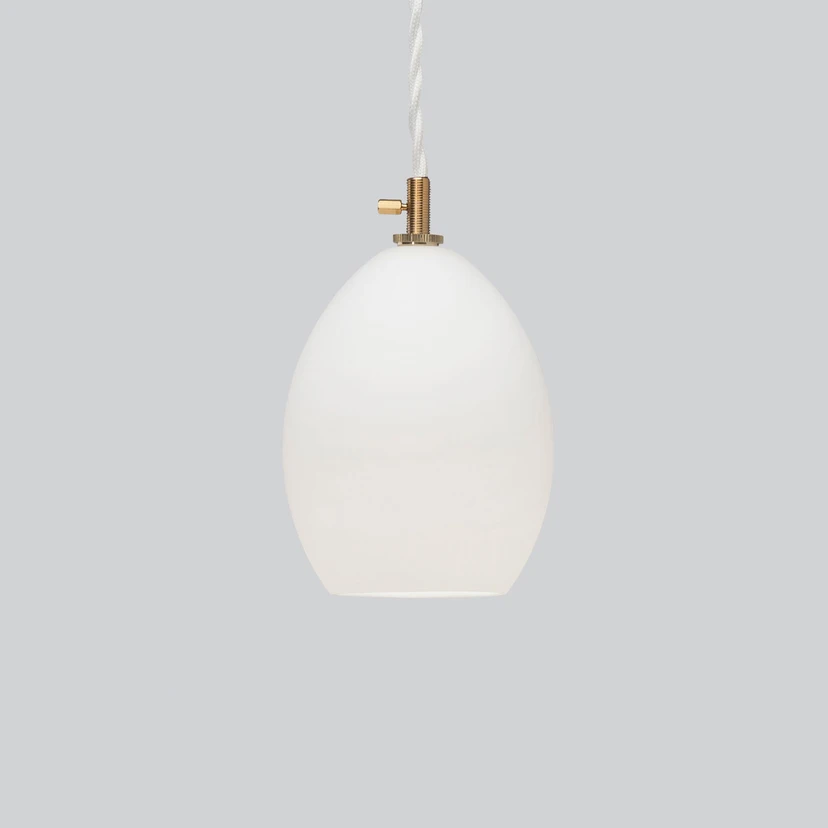 Das industrielle Detail der modernen Glas-Pendelleuchte findet sich dezent und zurückhaltend im Messingdetail. Dieses sitzt in der Verbindung von Lampenschirm und Abhängung und zeichnet sich durch eine kleine Schraube aus. Der Schirm selbst ist hier aus mundgeblasenem, reinweißem Glas. Durch das ebenfalls weiße Textilkabel der Abhängung schafft das Messingdetail in der Mitte einen gewollten, aber sehr angenehmen Kontrast. Das Design dieser stilvollen Leuchte stammt aus der Feder des Designer-Duos Anne Louise Due de Fønss & Anders Lundqvist. Diese entwarfen die Leuchtenserie Unika ursprünglich für das Kopenhagener Restaurant Grønbech and Churchill. Hier zeigt sich auch die ideale Verwendung: Über Tischen oder Theken installiert bietet Unika durch den nach unten offenen Glasschirm ein helles und trotzdem sehr angenehmes Licht.
