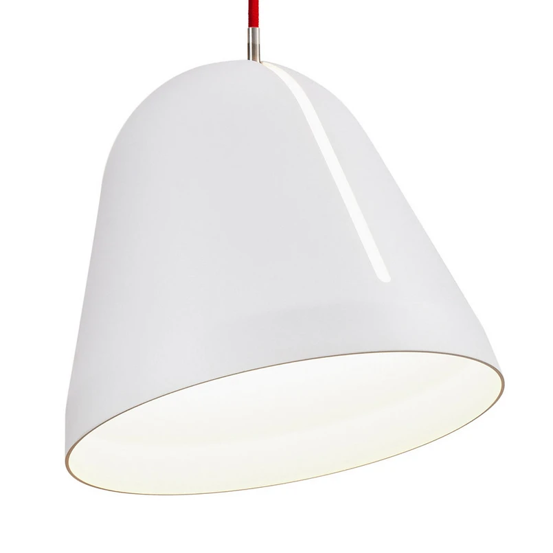 Die prämierte Pendelleuchte Tilt aus dem Hause Nyta bietet offenes, weiches Licht, welches nach den eigenen Bedürfnissen im Handumdrehen einfach neu ausgerichtet werden kann. Möglich macht dies ein kleiner Schlitz an der Seite des aus Aluminium hergestellten Lampenschirms. Ganz intuitiv lässt sich der Schirm entlang der langen Öffnung in alle Richungen schwenken und drehen, sodass das Licht der Pendelleuchte Tilt zum Beispiel auf ein spezielles Objekt oder einfach nur in den Raum hinein leuchtet. Die Kombination aus matt lackiertem Schirm und rotem Textikabel erschafft eine Leuchte, die in jedem modernen Wohnraum und Ambiente ihren Platz findet.