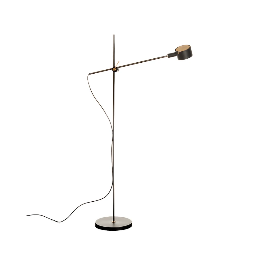 Bereits in den 1960er-Jahren entwarf Guiseppe Ostuni für Oluce dieses Leuchtenmodell G.O., das jetzt in einer Neuauflage unter Verwendung von Farbe produziert wird. Wie das ursprüngliche Modell sind auch die neuen Versionen mit dem schon damals stilistischen Merkmal des zylindrischen Leuchtenkopfs ausgestattet. Das Gelenk am Gestell ermöglicht die gezielte Ausrichtung des Leuchtenschirms, so dass der Lichtstrahl individuell positioniert werden kann.