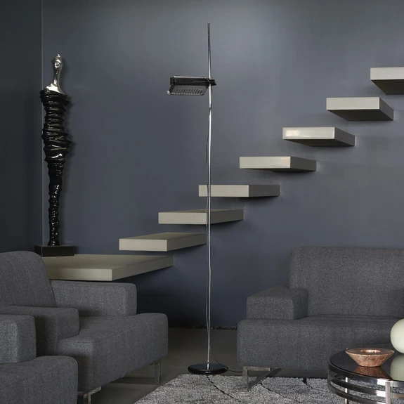 Oluce LED-Stehleuchte Colombo, schwarz/chrom, Metall