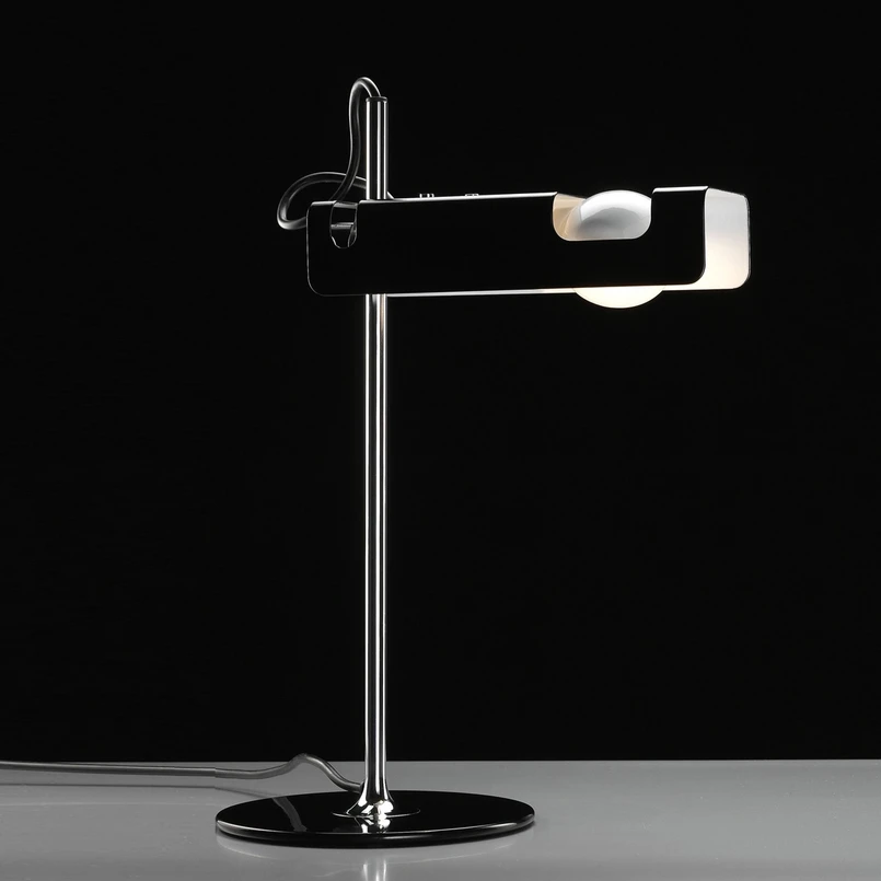 Die Tischleuchte Spider wurde bereits im Jahr 1965 vom Designer Joe Colombo zu dem Zweck entworfen, eine horizontal strahlende Lichtquelle zu sein. Über ein Kunststoffgelenk ist der Aluminiumreflektor in der Höhe verstellbar, sodass der Strahlungswinkel des Leuchtmittel variiert werden kann. Einen ansprechenden Kontrast dazu bildet der schlanke Fuß aus chromglänzenden Metall. Die Tischleuchte Spider gewann im Jahre 1967 den Compasso d'Oro Award und ist bis heute Teil der Dauerausstellungen der Mailänder Triennale, im Philadelphia Museum of Art, Kunstmuseum Düsseldorf und im Museum "Neue Sammlung" in München.