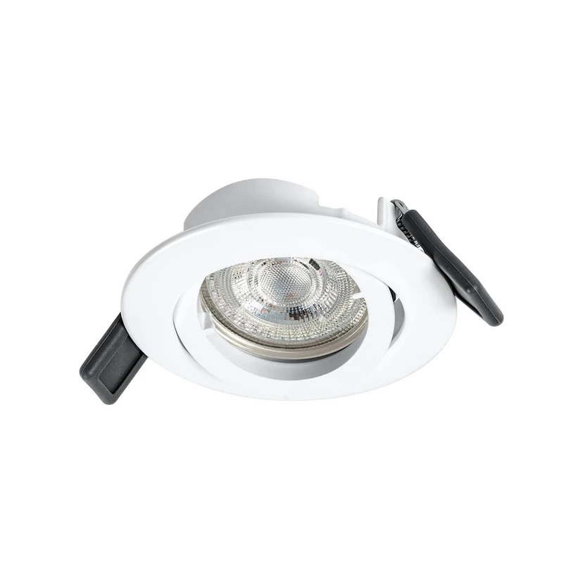 Dieser runde Spot zum Deckeneinbau wird mit warmweiß strahlendem GU10 LED-Leuchtmittel geliefert und überzeugt Twistlock-System. Gehäusematerial: Metall. Osram Lampe inklusive. Twistlock-System. Lenkbar. Anwendungsgebiete: Innenraumanwendungen. Korridore, Eingangsbereiche, Treppenhäuser, Wohnzimmer, Keller. Schlafzimmer. Küchen. Technische Ausstattung: Vollständiges Montage- und Anschlusszubehör enthalten.