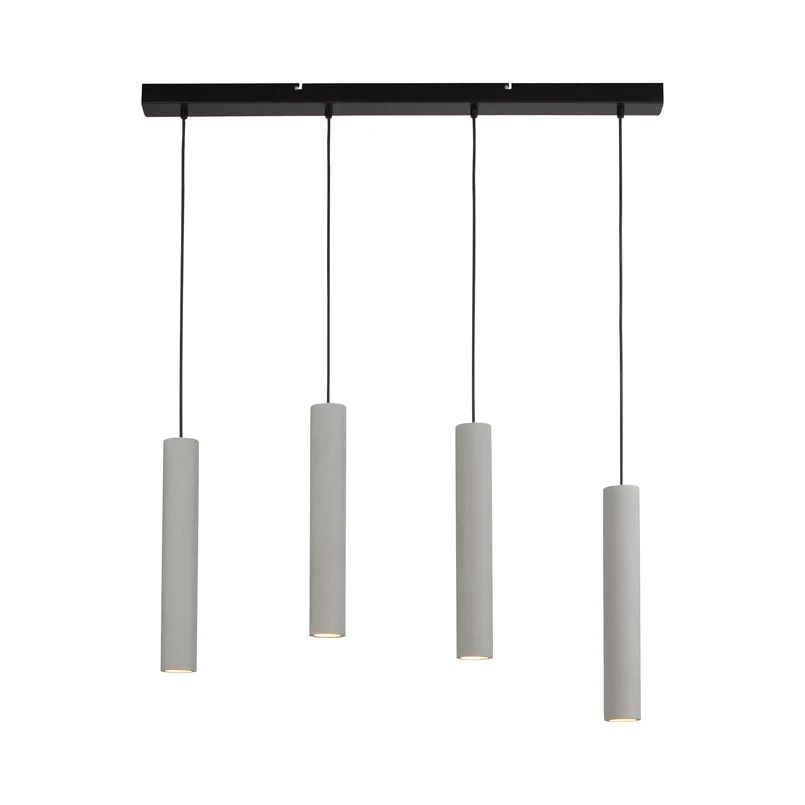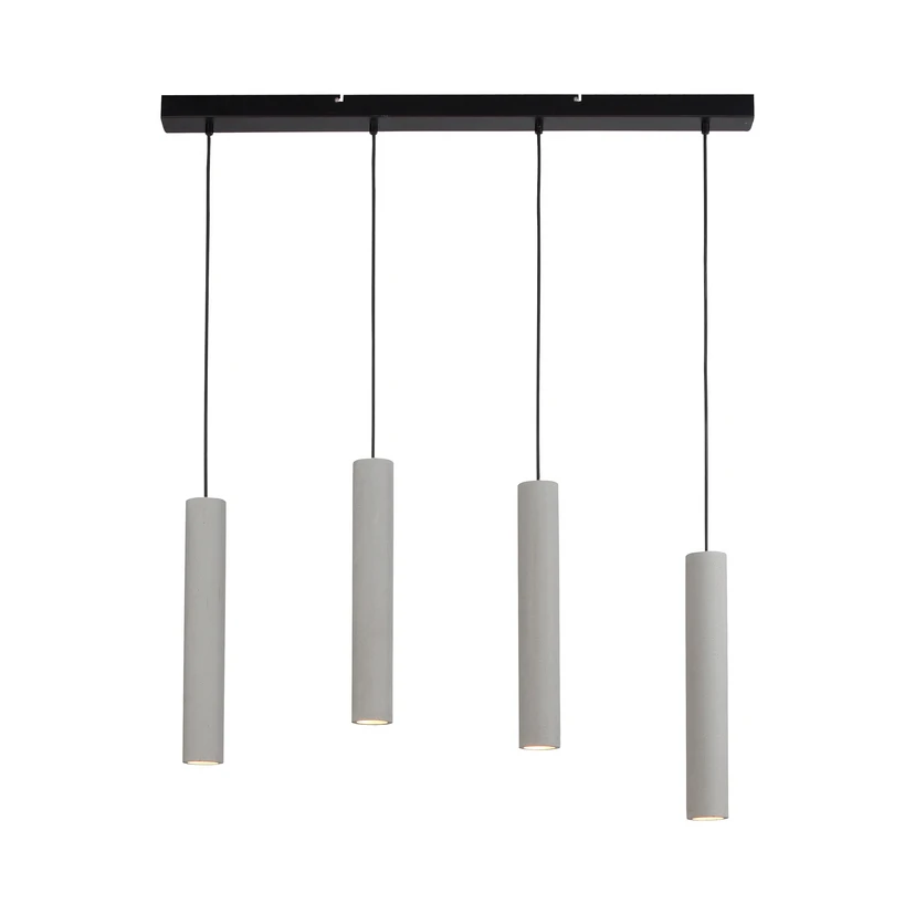 Balkenpendelleuchte Eton mit vier zylindrischen Lampenschirmen aus Beton