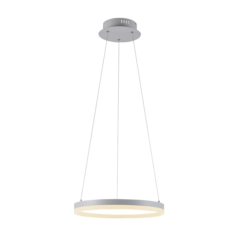 Die LED-Pendelleuchte Titus punktet mit ihrem schlichten Design. Durch ihre moderne Form passt die runde Hängelampe in viele Einrichtungsstile und verleiht Ihrem Zuhause zusätzlich einen edlen Touch. Egal ob im Wohnzimmer, Schlafzimmer oder im Esszimmer: die Pendellampe begeistert als hübscher Hingucker über Ihrem Esstisch, Couchtisch oder über Ihrem Bett. Die Leuchte erstrahlt in einem angenehmen Warmweiß und trägt etwas zur gemütlichen Atmosphäre in Ihren Wohnräumen bei.