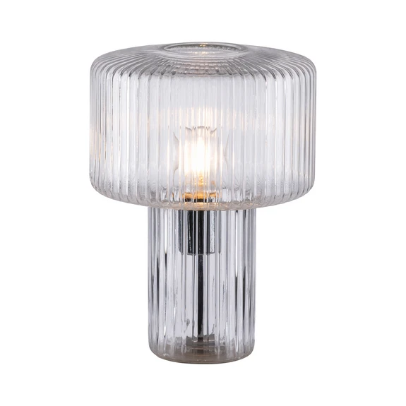 Die Tischleuchte in seiner natürlichen Pilzform ist eine wahre Augenweide! Vor allem in eingeschalteter Funktion entsteht durch das Riffelglas ein zauberhaftes Licht- und Schattenspiel in der direkten Umgebung. Auszustatten ist die Tischlampe mit einem E27 Leuchtmittel mit max. 10 Watt (nicht im Lieferumfang enthalten). Über den integrierten Schnurschalter lässt sich die Tischlampe ganz bequem bedienen. Holen Sie sich mit dieser formschönen Leuchte einen eindrucksvollen Eyecatcher in Ihre vier Wände!