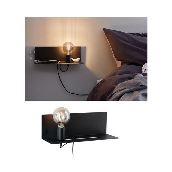 Wandleuchte Devara mit praktischer Ablage, Kabel und Stecker
