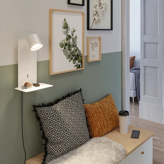 Wandleuchte Malena mit praktischer Ablagefläche und USB-Anschluss