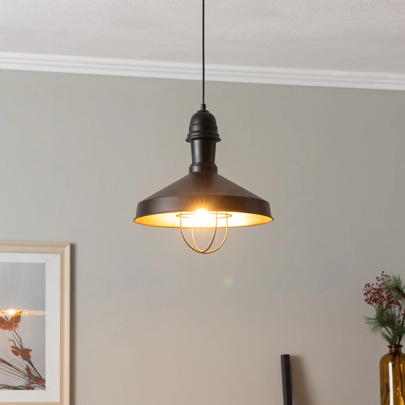Die Pendellampe AV-4106-M25-BSY vereint robustes Eisen und hochwertiges Metall in einem faszinierenden Design, das durch den Käfigschirm einen Hauch von industriellem Charme in jeden Raum bringt. Die Kombination aus schwarzer und antikgoldener Farbgebung verleiht der Lampe eine zeitlose Eleganz, die sowohl im Esszimmer als auch im Wohnzimmer oder in der Küche Akzente setzt.