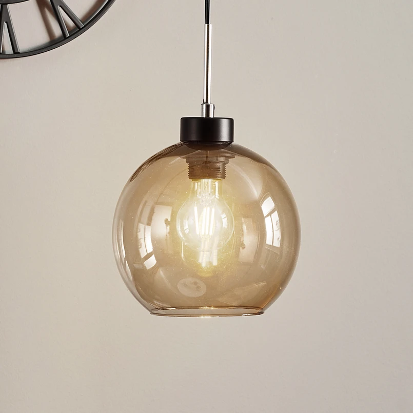 Pendellampe Gota mit Rauchglasschirm in Kugelform