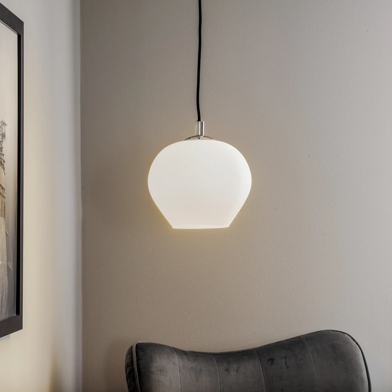 Die Pendellampe Kaja mit Glaskugel opal vereint zeitloses Design mit funktionaler Eleganz. Die opale Glaskugel sorgt für eine gleichmäßige Lichtverteilung, die jedem Raum eine harmonische Atmosphäre verleiht. Das minimalistische Design der Lampe fügt sich nahtlos in verschiedene Einrichtungsstile ein und setzt stilvolle Akzente. Dank der hochwertigen Materialien und der präzisen Verarbeitung bietet die Pendellampe Kaja nicht nur optische, sondern auch langlebige Qualität.
