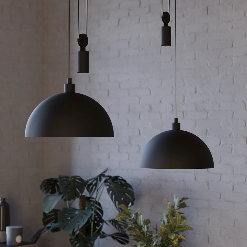 Die Pendelleuchte Winkworth ist mit zwei runden schwarzen Lampenschirmen aus Stahl mit schwarzer Schirminnenseite gefertigt. Dank des Gegengewichts am Pendel ist die Lampe in der Höhe individuell verstellbar und bietet ein optisches Highlight. Die Hängelampe im angesagten Monochrom-Design fügt sich nahtlos in den Industrial-Trend und in moderne Einrichtungsstile ein. Sie bietet eine stimmungsvolle Beleuchtung für das Wohnzimmer oder im Esszimmer über dem Esstisch.
