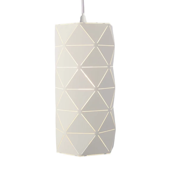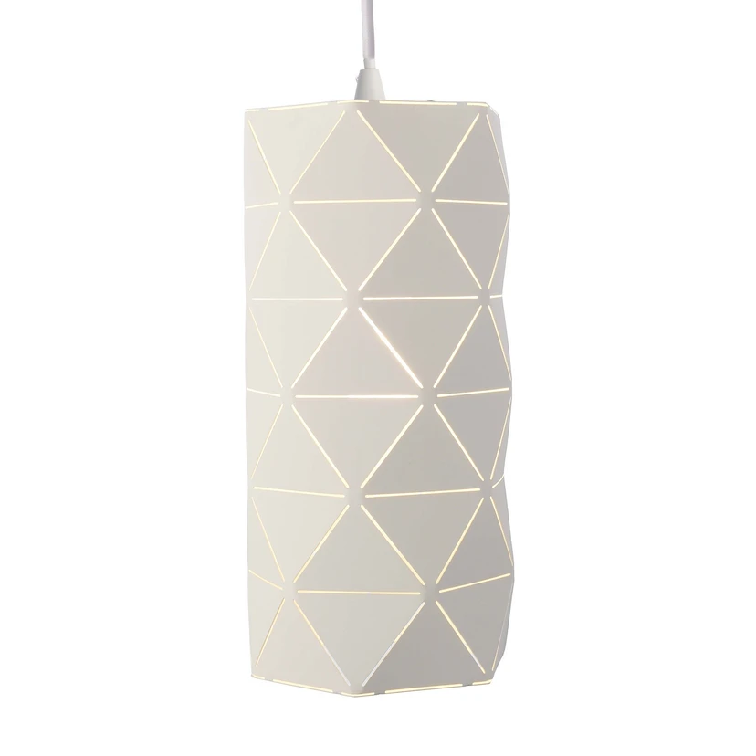 Der Lampenschirm der modernen Pendelleuchte Asterope ist länglich geformt und besitzt eine facettenreiche Oberfläche. In Dreiecken abgestimmte Durchbrüche machen den Schirm durchscheinend und erschaffen so das einzigartige Ambiente, welches von der Pendelleuchte Asterope linear ausgeht. Perfekt für die elegante wie moderne Beleuchtung von Wohnräumen oder aber auch im gewerblichen Bereich, wie zum Beispiel in der Gastronomie.