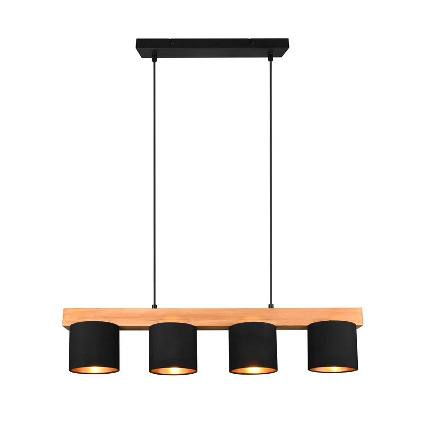 Moderne Pendelleuchte Cameron aus Holz und Textil