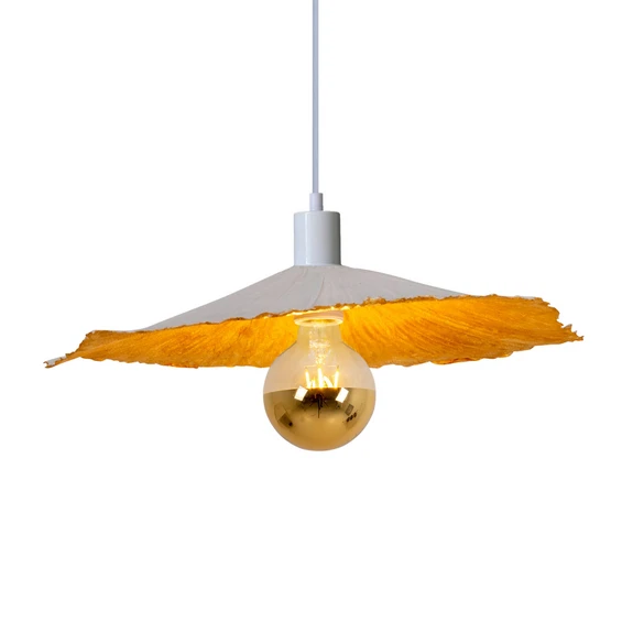Der flache Lampenschirm ist das Erste, was jedem Betrachter an der modernen Hängeleuchte Crazy Paper auffällt. Dieser ist nicht nur ungewöhnlich in seiner Form, sondern auch besonders in der Wahl des Materials. Es ist Papier, aus dem der Schirm besteht, der außen in schlichtem Weiß und innen mit einem glänzenden Goldton ausgestattet ist. Das Leuchtmittel, das selbst gewählt werden kann, ist hier offen zu sehen und somit zentraler Bestandteil des Designs. Die Hängeleuchte Crazy Paper kommt besonders gut über Tischen zur Geltung und ist mit ihrem ungewöhnlichen Design Lichtquelle und Blickfang zugleich.